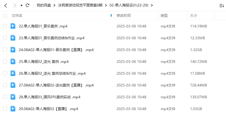 冰枫营游戏视觉平面营第8期2024年(画质清晰带部分素材) 2025-09-20 平面设计 411 5 推广 资源大小:25.48g下载方式:百度网盘 5555下载价格15 金币终身VIP免费升级终身VIP立即购买提示:如遇下载链接错误、失效等情况,可直接后台提交工单说明情况等待补发链接。资源均来自公开网络收集和用户投稿,仅供学习交流使用,版权归原作者所有!若侵犯您的合法权益,请联系我们删除。资源大小:25.48g下载方式:百度网盘 原文链接:https://www.mcziy.com/%e5%86%b0%e6%9e%ab%e8%90%a5%e6%b8%b8%e6%88%8f%e8%a7%86%e8%a7%89%e5%b9%b3%e9%9d%a2%e8%90%a5%e7%ac%ac8%e6%9c%9f2024%e5%b9%b4%ef%bc%88%e7%94%bb%e8%b4%a8%e6%b8%85%e6%99%b0%e5%b8%a6%e9%83%a8%e5%88%86/,转载请注明出处。 1 0 上一篇街头霸王隆UE5虚幻5次世代游戏角色制作全流程2024年(超清画质带素材) 下一篇云尚教育Keyshot场景渲染系列课程2023年(高清画质无素材) 猜你喜欢 创意视觉设计师培养计划万晨曦卢帅曹凡2021年2021年(画质清晰带素材) 2周前 58 0 0 12 立方甲丨包装设计课程第四期(画质高清无素材) 3周前 82 0 0 15 周少龙平面新视觉商业大师班2022年(画质高清带素材) 2026-01-20 175 0 2 15 胡晓波VI品牌设计班27期(画质高清) 2026-01-19 163 0 0 12 K先生丨版式设计训练营第13期2021年(高清画质有素材) 2025-11-29 416 0 0 15 冰枫营游戏视觉平面营第8期2024年(画质清晰带部分素材) 2025-11-26 382 0 2 12 评论0 取消 提交