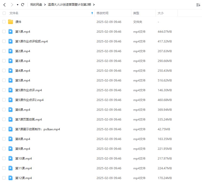 温酒大人UI创造营面壁计划第2期2024年(高清画质带PDF课件) 2025-10-20 UI设计 291 1 推广 资源大小:4.47G下载方式:百度网盘 5555下载价格12 金币终身VIP免费升级终身VIP立即购买提示:如遇下载链接错误、失效等情况,可直接后台提交工单说明情况等待补发链接。资源均来自公开网络收集和用户投稿,仅供学习交流使用,版权归原作者所有!若侵犯您的合法权益,请联系我们删除。资源大小:4.47G下载方式:百度网盘 原文链接:https://www.mcziy.com/%e6%b8%a9%e9%85%92%e5%a4%a7%e4%ba%baui%e5%88%9b%e9%80%a0%e8%90%a5%e9%9d%a2%e5%a3%81%e8%ae%a1%e5%88%92%e7%ac%ac2%e6%9c%9f2024%e5%b9%b4%ef%bc%88%e9%ab%98%e6%b8%85%e7%94%bb%e8%b4%a8%e5%b8%a6pdf%e8%af%be/,转载请注明出处。 0 0 上一篇吴昊无号第五期造型特训营2023年(画质清晰无素材) 下一篇维吉尔基础班2023年(画质一般带素材) 猜你喜欢 大渔UI设计就业班第1期2024年(高清画质带小部分素材) 2025-11-25 245 0 0 12 乐魔AE游戏UI动效多风格系统培训课2022年(高清画质带部分素材) 2025-11-08 283 0 2 15 乐魔leo游戏UI动效0基础系统课(高清画质带素材) 2025-11-08 275 0 1 15 梁定然霍普斯汀互联网设计进阶第16期(高清画质带素材) 2025-11-08 285 0 1 12 酸梅干超人零基础网页UI训练营2022年(高清画质无素材) 2025-11-08 253 0 1 10 且曼UI设计全能班第19期2024年(画质普通无素材) 2025-10-29 273 0 3 12 评论0 取消 提交